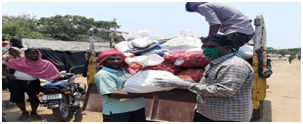 Rice, Dal, Cooking Oil, Masala Packets and Vegetables to 75 migrant workers of Bihar held up at FCI Godown, Eluru, comprising25 families. Each kit valuing Rs 1000/- for family. This was coordinated by Gramodaya Trust on behalf of the State Help Line for Migrant Workers led by Ms Kavitha Kuruganti, RSV and WASSAN and we have coordinated with Revenue Department of the District Administration.